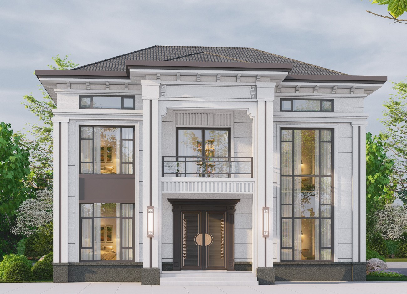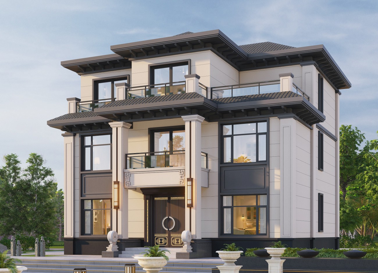 石景山12 新中式两层半(12.8x13.06米)-【易设计】