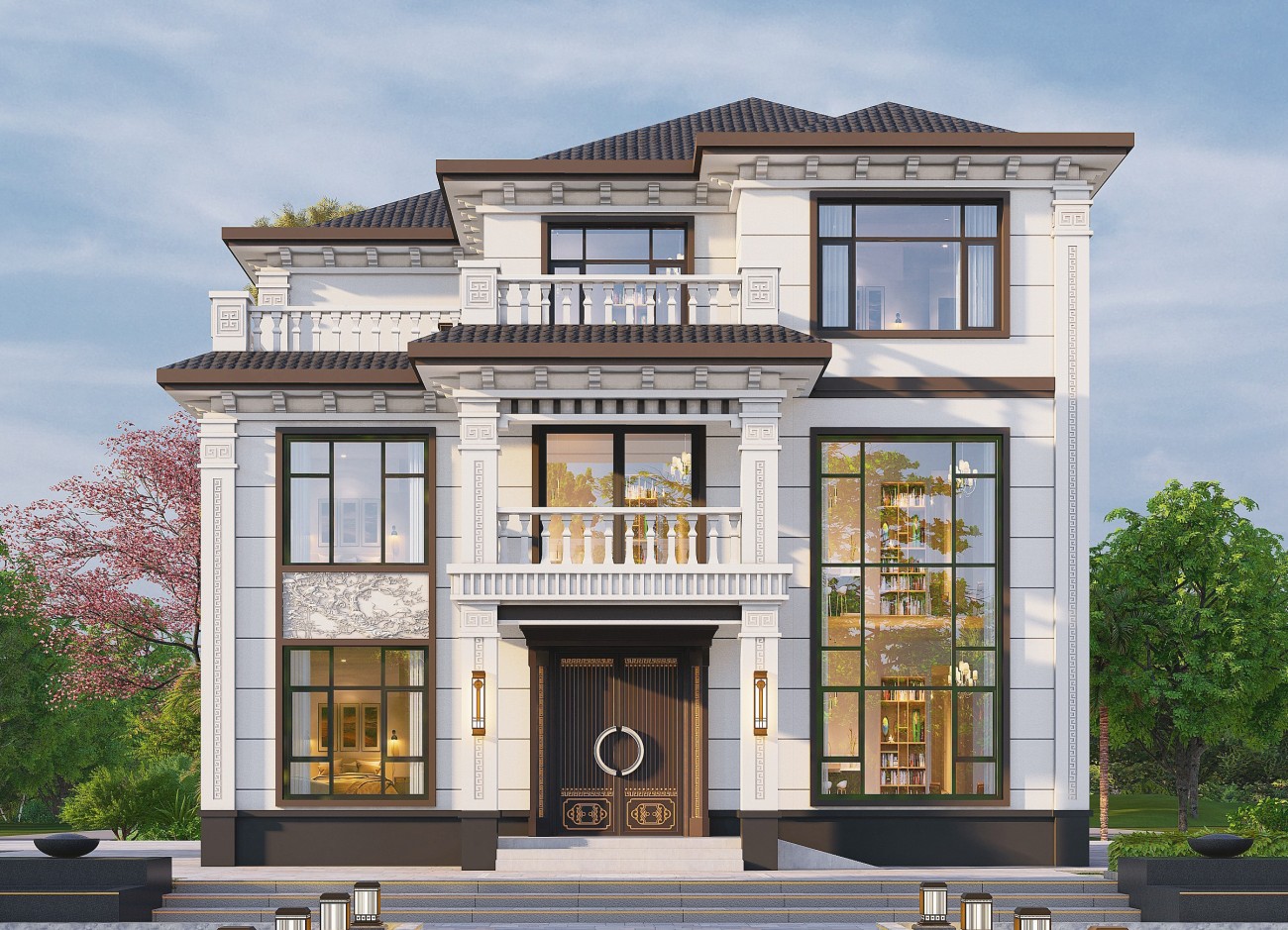 石景山18 三层新中式(13.62x13.6米)-【易设计】